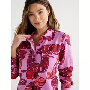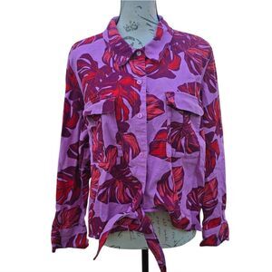 Sofia Jeans Women's Tie Front Linen Top With Cargo Pockets Opera Mauve Pink Size XL