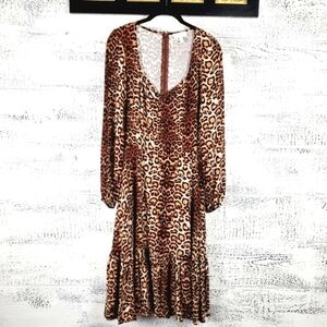 Sofia Jeans by Sofia Vergara Women Cheetah Tiered Midi Dress Sz S Boho Glam
