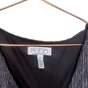 Elevate your wardrobe with this stunning Sofia Jeans by Sofia Vergara v-neck blouse in size XL. The silvery color adds a touch of glamour to any outfit, making it perfect for both casual and dressy occasions.