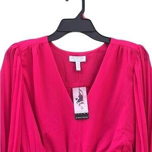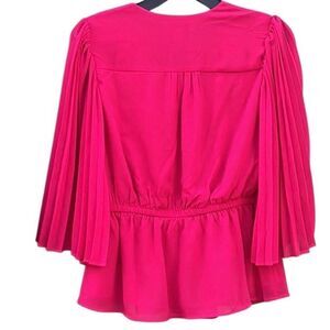 Sofia Jeans V-Neck Sheer Top with Pleated Sleeves Size M