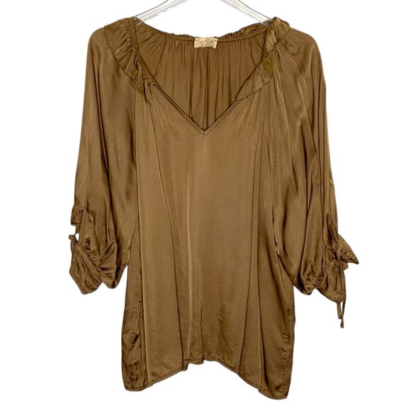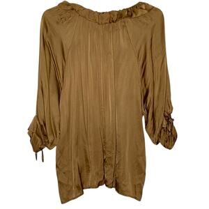 Sofia OS Made in Italy Brown Satin Flowey Peasant Blouse Boho