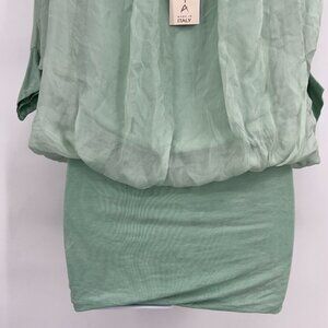 Sofia Made in Italy Green Sheer Batwing Dress Fitted Mini Skirt – One Size NWT