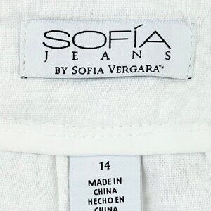 Sofia Vergara Jeans Women's Linen Blend High Rise Belted White Shorts Size 14