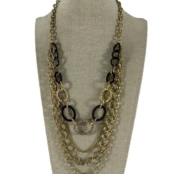 Sofia Vergara Multi Strand Necklace Gold Tone Chains Rhinestones Statement
