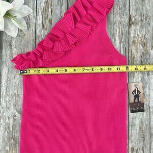 Sofia Vergara One Shoulder Ruffled Knit Tank Top Shirt Size XS
