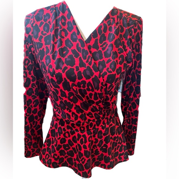 Sofia Vergara Red Leopard Print Top Size Medium Long Sleeve