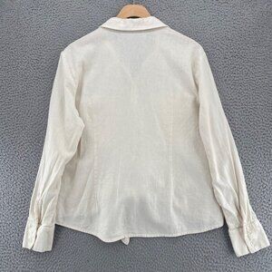 Sofia Vergara Top Womens Large Ivory Linen Blend Button Up Tie Crop Long Sleeve