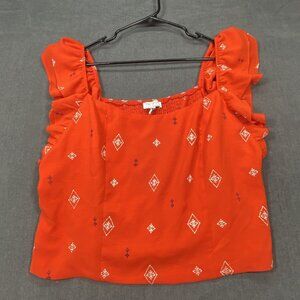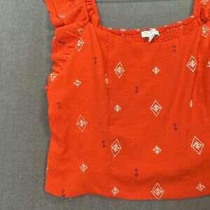 Sofia Vergara Womens Red Sleeveless Ruffle Top XXL 100% Polyester Smocking Back