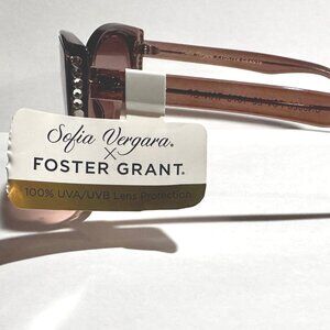 This is a Brand New with the Tag pair of Sofia Vergara x Foster Grant Designer Sunglasses. They are a Cat Eye frame that is Caramel Brown color with Rhinestone accents on the rims. They have 100% UVA & UVB protection while the lenses are tinted. These glasses are polarized to reduce glare & scratch / impact resistant.