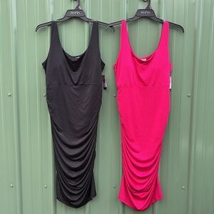 Sofia Womens Body Sculpting Ruched Tank Dress, Below Knee Length 2-Pack Size XXL