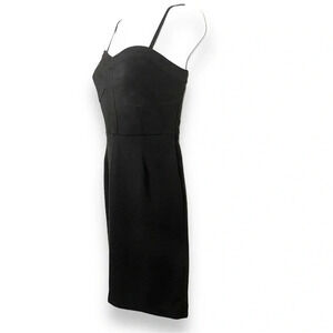 Sofia by Sofia Vergara Bodycon Corset Style Black Knit Dress Size Small. Adjustable straps are also removable. Side zipper, and back slit for ease of movement. See photo for approximate measurements. Poly/Rayon/Spandex knit blend. In excellent condition!
