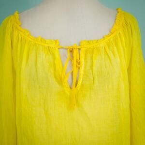 Sofia by Vix Size Medium M Yellow Cotton Gauze Lightweight Tie Keyhole Neck Long Sleeve 100% Cotton Swim Cover Up Dress