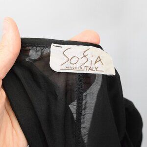 Sofia made in Italy Sheer Black Silk Chiffon V-Neck Peasant Top