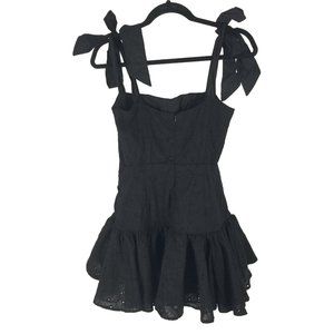 Sofia the Label Black Eyelet Mini Dress Bow Strap Daisy Cocktail Wedding Girly