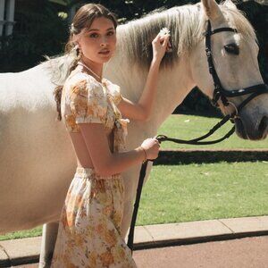 Sofia the Label Sunny Tie Front Crop Top in Yellow Floral size AU 8 NWT