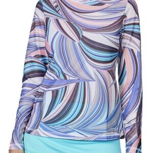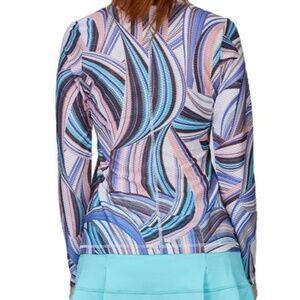 This sporty Sofibella Airflow Long Sleeve Tennis Top is created with a breathable mesh designed with ventilating airways to keep you refreshed when moving across the court.