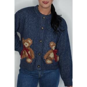 Sofie The Label Teddy Cardigan Sweater Navy Blue Botton Front Women’s Sz Medium