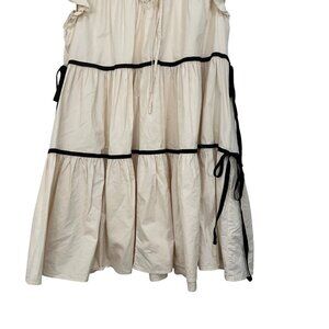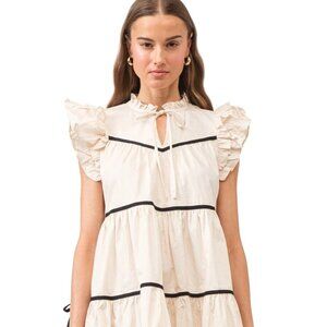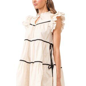 Sofie the label Ruffle Sleeve Tiered Mini Dress With Black Trim/Tie Detail Large