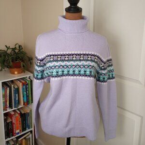 Soft 90s Purple Lavender Fair Isle Turtleneck Knit Sweater Style & Co Hygge Y2K