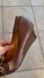 Soft Abbot Brown Leather Wedge with Snakeskin Print & Gold Chain Detail Size 11M