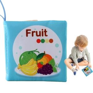 Fabric crinkle book for babies, designed for early learning and sensory development. It features a theme and is intended for ages 0+.