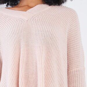 Baby Soft Pink V-Neck Asymmetrical Oversized Long Sleeve Zipper detailed sweater top