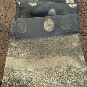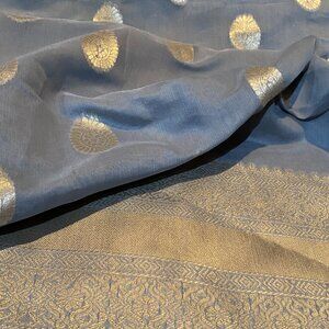 Soft Banarasi Saree in Dusty Gray with Rich Zari Border & Pallu