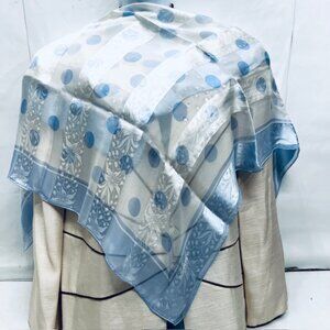 Soft Beautiful RENOMA PARIS 100% Silk 34" x 34" Blue of White Cream Floral (Sc3)