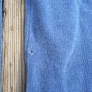 SUPER soft blue pullover with one small hole near the inside seam. Could probably be sewn without too much hassle (I may even attempt it myself). Fits well.