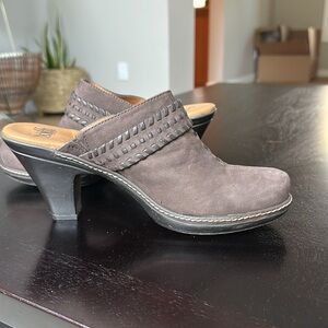 Soft Brand Brown Leather Mule Clog Heel With Braided Buckle Detail