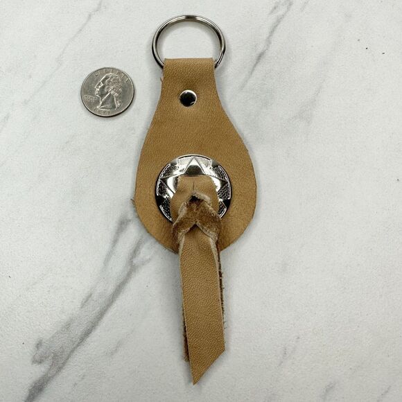 Soft Brown Leather Fringe Western Concho Boho Keychain Keyring