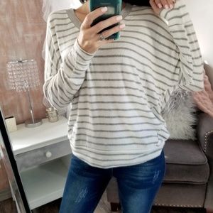 Super soft brushed top in Gray and Ivory. Lightweight and so pretty on! Dolman sleeves
