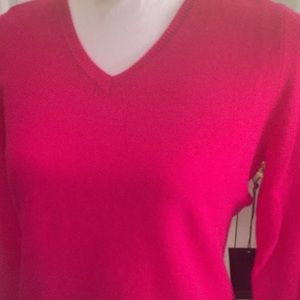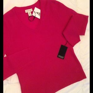 100% 2-ply cashmere. Magenta, not bright pink. Had difficulty capturing proper color.