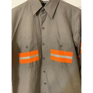 Soft Comfort By Unifirst Gray Orange Safety Work Mechanic Tow Button Shirt Sz M