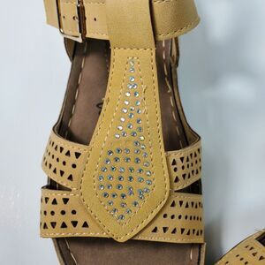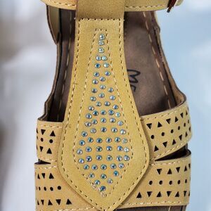 Soft Comfort Wedge Sandals 7.5 W Amber Yellow Crystal Accents