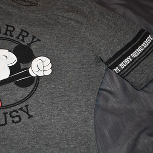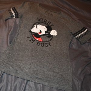 Soft gray cotton Disney Mickey Mouse T-Shirt. "Busy Being Busy" (Like New)