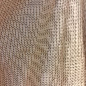 Soft Cream Sweater - looks cute with everything! In good condition with signs of wear. Thread pulled on the upper left side (see photo) and a small stain present (see photos). Also some piling. See photos or comment below for more details!