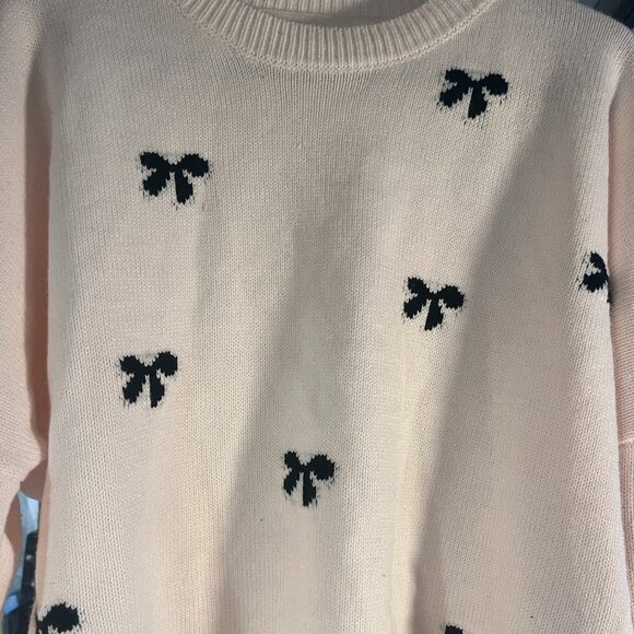 Adorable cream knit sweater with black bow accents throughout 🖤