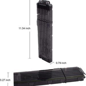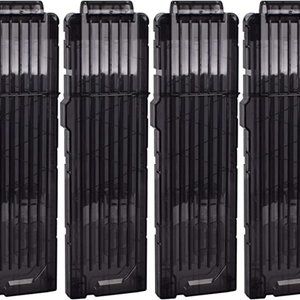 This magazine clip is compatible with all NERF N-STRIKE ELITE. Suitable for the dart size of 7*1.35cm. High Quality: Made of top quality ABS plastic, all clips tested and approved for performance and quality. Package Content: 4 18-darts magazines, Product Size: 11.34 x 3.27 x 0.79 inch, Color: black. The bullet clip can hold 18 foam darts or soft bullets. Great accessory fit for all Nerf soft bullet/dart gun, fit for newer Buzz bee blasters also.Great gift for Nerf player. QT3