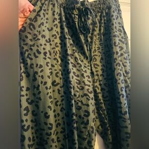 Soft Drawstring Tie Elastic Waist Loose Jogger Pants with Pockets, GRN/BLK, 1XL, NWOT