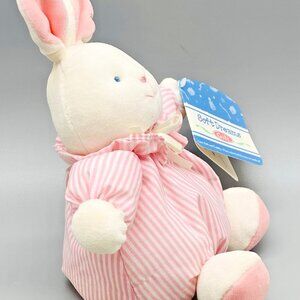 Soft Dreams Bunny Plush Terry Cloth Stuffed Animal Rattle Squeaks Pink Stripes