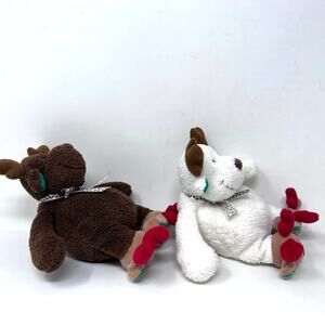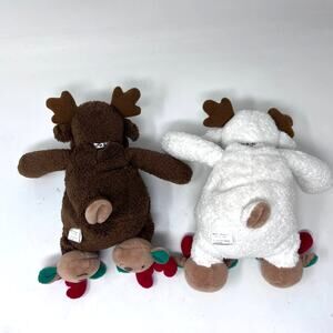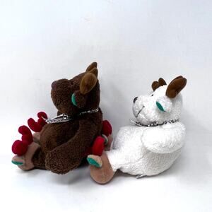 Soft Dreams Reindeer Plush Rattle Set of 2 White Brown Christmas Bow Slippers Style 4141 - approx. 6" in gently used condition from a smoke free home.