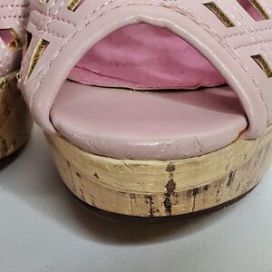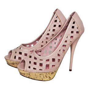 Soft Dusty Pink Cork Platform Stilettos 8.5 Peep Toe Cut Out Lattice Pattern