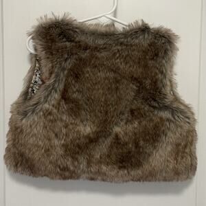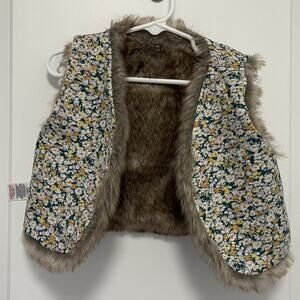 Brown & greys, soft faux fur vest. Lined with a floral Print. Green, orange, yellow and white colors. No stains, holes or flaws. Measurements in pictures. Size 3T, smoke free home.
