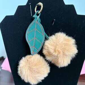 Soft Faux Rabbit Fur Cherry Leaf Keyring Pompom Key Chain Key Ring Bag Charm New