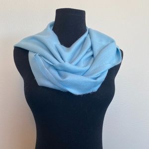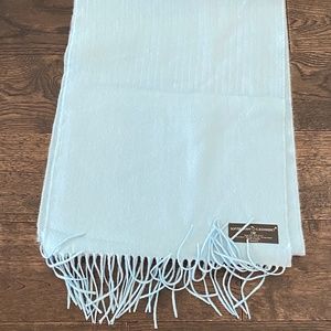 Softer than Cashmere! Beautiful baby blue fringe-hem scarf, OS, New in package. 100% acrylic Measures 66" long x 12" wide.