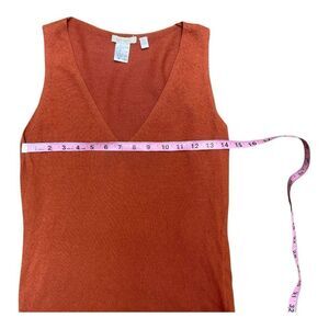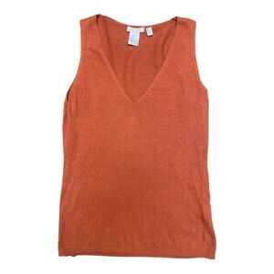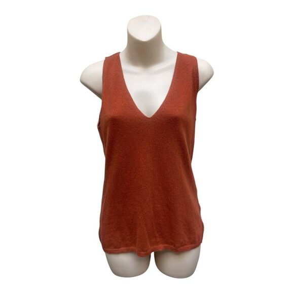 Elevate your wardrobe with this stylish rust sleeveless top. Perfect for any occasion, this top offers both comfort and elegance. Soft Grey Rust Cashmere Cotton V-Neck Sweater Sleeveless Top Size 10 Preppy EUC