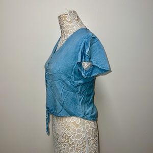 Super comfy, worn one time, soft material. The look is like jeans, but it is a cotton material shirt.