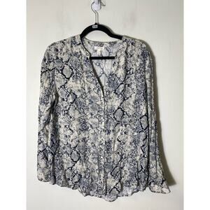 Soft Joie Black White Gray Long Sleeve V-Neck Button Up Shirt Sz M