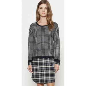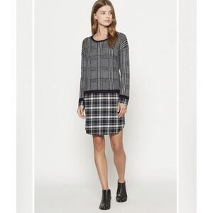 Soft Joie Dinay Sweater Dress Womens Small Long Sleeve Layered Mixed Plaid Black